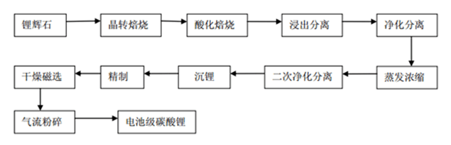 注:電池級(jí)碳酸鋰生產(chǎn)工藝流程圖